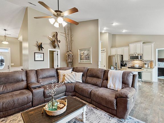- Ceiling Fan(s), Cathedral Ceiling(s), Tray Ceiling(s), Fireplace, Ceiling - Smooth, Solid Surface Counters, Open Floorplan, Split Bedroom Plan