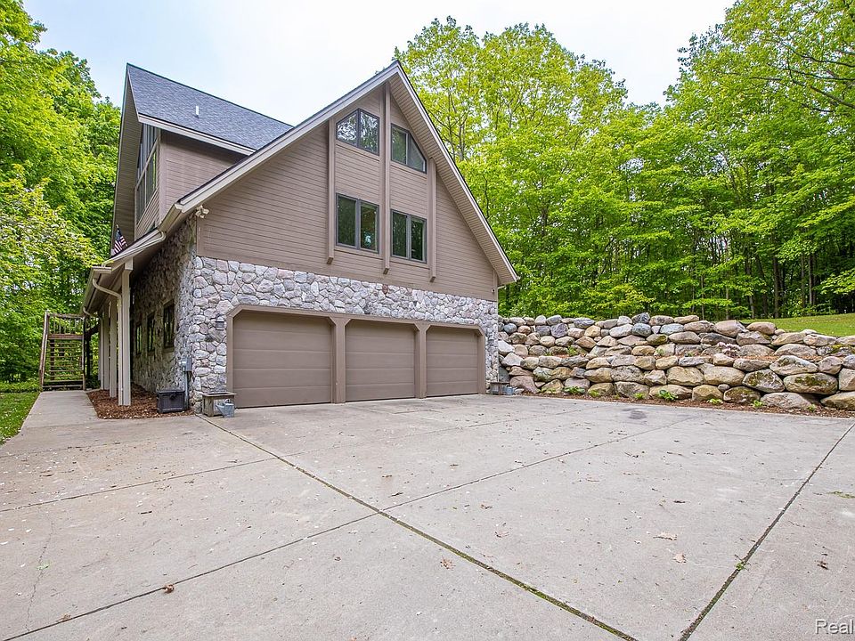 ARCHITECTURALLY INSPIRED EXECUTIVE HOME, OVER-LOOKING NATURE AT IT'S BEST ON 2.67 ACRES ADJACENT TO ACRES OF STATE LAND. THIS PRISTINE HOME WELCOMES YOU TO A STYLISH AMBIENCE WITH 3,100 SQ FT OF COMBINED LIVING SPACE. NEUTRAL CARPET, SOOTHING PALETE OF PAINTS, SEA OF CUSTOM HARDWOOD COMPLIMENTS THIS OPEN FLOOR PLAN THAT FLOWS SEAMLESSLY FROM GREAT RM W/SOARING 20' CEILINGS SURROUNDED WITH WALLS OF WINDOWS FOR NATURAL LIGHT, EXPANSIVE CULTURED FIELDSTONE FIREPLACE. DELIGTFUL WHITE CABINETRY KITCHEN, GRANITE ISLAND & SNACK BAR FOR ENTERTAINING, ADJACENT TO SCREENED IN PORCH (2017), WRAP AROUND DECKING. FORMAL DINING RM, AMPLE SIZED BDRS, CERAMIC/GRANITE BATHS. PRIVATE MASTER SIZED SUITE, CATH CEILS, ROOMY SITTING AREA OR POSSIBLE STUDY WALKS OUT TO SECLUDED DECK. MASTER BTH W/LG WALK IN SHOWER/STEAM RM, DBL SINKS, JETTED TUB, OVERSIZED WIC. ADDITIONAL FIN WALK OUT, BAMBOO FLRS, COZY FAMILY RM, WOODBURNING STOVE, WET BAR, FULL BATH. EXTRAS INCLUDE: 2 1/2 CAR METAL GARAGE, 220 EV PLUG IN GARAGE, BOULDER WALL (2023), WIRED FOR SURROUND SOUND, GEN HOOK-UP. UPDATES: DECK BOARDS (7 YRS), FURNACE/ROOF 2013, HWH 2023, NEW PRESSURE TANK. HOME CENTRALLY LOCATED TO VILLAGE OF CLARKSTON, EXPRESSWAYS, DINING, SHOPPING. A MUST SEE!!!