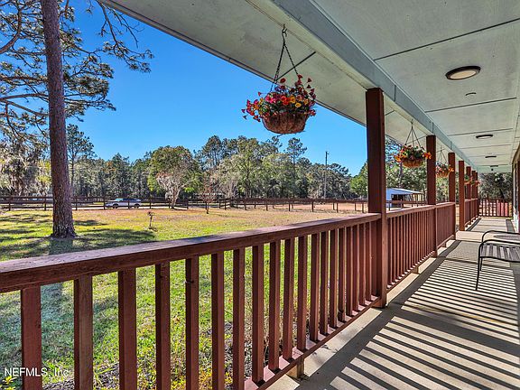 See stars from your 2.13 acre private property! Away from the traffic yet just 6 miles from the Buckman Bridge, this 3 bedroom, 2 full bath, 1 story home is completely REMODELED featuring vaulted ceilings, open concept floor plan, butler pantry, 2 sets of French doors, upgraded appliances, whole-house water filtration system, tankless water heater, installed tool storage cabinets in both the epoxied garage & your HUGE workshop. Workshop has an inviting front porch, dehumidifier to prevent tools from rust, covered mower parking + attached chicken coop with auto door! Other buildings on the property include stalls/carport, Kennel with heat and AC, and an animal pen that can also be used for the world's best BBQ spot. All buildings have working plumbing and electricity! Fencing separates property sections and gates allow access. Relax under the lit pavilion, in your screened porch, or out front on your wrap around porch. Military owner, rate assumable. Clear WDO report Jan 2025