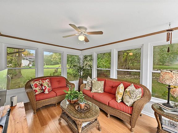 STUNNING LANNON STONE RANCH ON A SPECTACULAR LOT! Prepare to be amazed by this beautiful ranch set on a parklike, terraced lot that offers privacy and serenity rarely found. Enjoy outdoor living and entertaining on the expansive deck overlooking lush greenery. Step inside to a welcoming great room featuring a natural fireplace, built-in bookcase, and rich wood flooring that flows through much of the home. The dining room includes a charming built-in china cabinet, while the updated kitchen boasts quartz countertops, warm wood cabinetry, ceramic tile flooring, and stainless steel appliances. Two spacious bedrooms provide ample closet space, and the retro ceramic bath offers classic charm with a shower over tub. Completing this exceptional home is a two-car tandem attached garage