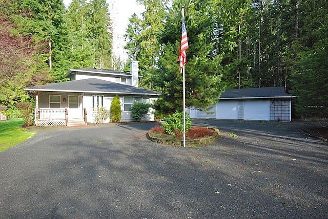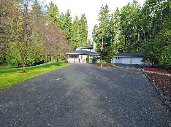 2.42 acres of totally private, gently rolling, wooded land close to Poulsbo, Kingston or Bainbridge Island ferry. Low maintenance landscaping with plenty of yard and a sprinkler system. Detached garage has heated shop-all set up for wood working. Generator stays. Covered Trex decking. Spacious island kitchen & huge pantry with storage galore. Electric forced air heat plus heat pump & propane stove. Main floor master has jet tub, huge customized closets & tile counters. Impeccably maintained.