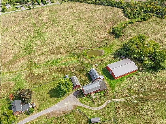 Stately brick Colonial set on over 53 picturesque acres with barns, meadows, and horse facilities—formerly a working horse farm! Property features 20 box stalls (some 12x14) plus 4 tie stalls, upgraded electric and lighting, and a 72x120 indoor riding arena. Approximately 53 acres are fenced with mostly ElectroBraid fencing, along with 6 run-in sheds. The area offers wonderful horse riding trails nearby, making this an ideal equestrian property.