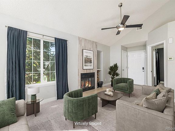 This light-filled 2-bedroom, 1-bath home offers an efficient 686 sq ft layout with soaring ceilings and expansive windows that flood the space with natural light. Enjoy brand-new carpet underfoot, a beautifully updated kitchen with granite countertops, stainless steel appliances, and fresh white cabinetry. The open-concept living area includes a cozy fireplace, vaulted ceilings, and a private balcony perfect for morning coffee. The spacious bathroom features modern tilework and sleek finishes. Additional perks include a newly installed dishwasher, upgraded lighting in the office, and an outdoor storage closet for added convenience. Located in a well-maintained community with a pool and lush green spaces, and just minutes from Cherry Creek State Park, I-225, and Light Rail. Ideal for first-time buyers, investors, or those seeking a low-maintenance lifestyle in a central location!