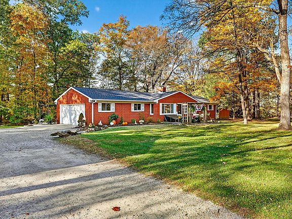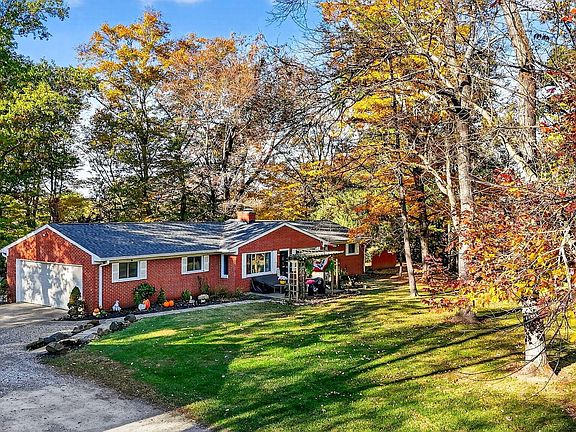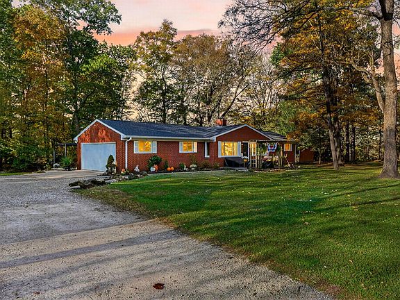 Welcome home to the stunning, ranch style home on over three acres of private, wooded land! The home is so welcoming from the moment you stroll down the lane! As you enter the home, the large family room is perfect for entertaining! The kitchen boasts lots of cabinetry, and offers a beautiful dining room with upgraded flooring, beautiful wood beams, and a lovely fireplace! Four large bedrooms on the main level and two, recently updated bathrooms that are gorgeous! The tilework is beautiful! The finished lower level offers two additional bedrooms, a rec room, and lots of storage space! Two car garage and lower level laundry! Enjoy your days on the amazing patio with pergola! Don't forget about the huge barn with three separate storage areas, plus an additional area used for turkeys and a chicken coop! Take a stroll in the woods on the trails too! This property is so unique! Super clean, well-kept, and ready to go! A must see!