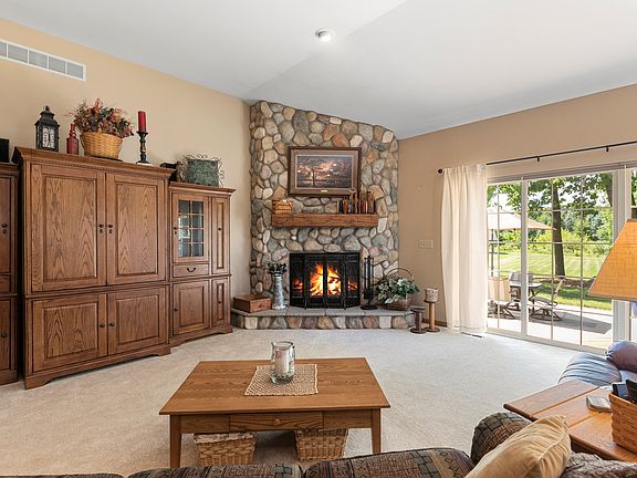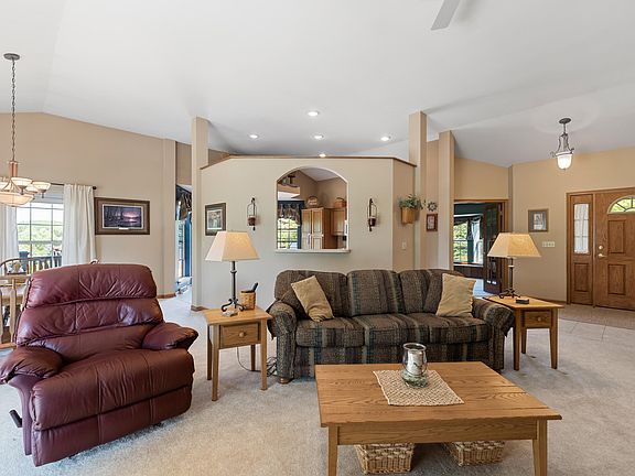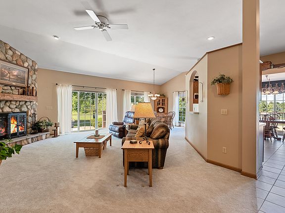 Country living at it's finest! Welcome to this peaceful 5 acre walk-out ranch with tons of amenities. This beautiful home offers an open floor plan with high ceilings. The great room has a natural fireplace and plenty of views of the gorgeous backyard. Spacious stainless steel kitchen with a bright eat-in area which leads to your large composite wrap around deck. Main level also offers a large master bedroom ensuite, 2nd bedroom, full bath, dining room, laundry room & den with glass French doors. The lower level has a 3rd bedroom, full bath, pet shower room & huge entertainment area w/NFP & patio doors to your covered patio. You'll have tons of storage space in the 30x40 detached garage with water, attic, upstairs storage & covered patio. NEW siding, roof, gutters in July 2022!