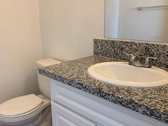 The kitchen has newer white cabinets with granite counter tops. There is plenty of space for a large dinning room table and chairs. There is a patio slider that leads you to a deck area that has a laundry room area. No cost to residents who use the laundry facility.