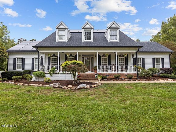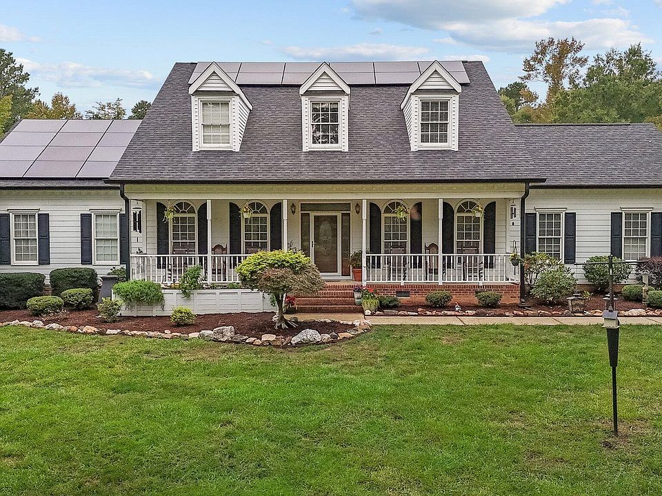 Welcome to this private sustainable retreat! Nestled on a sprawling 15 acre wooded lot, this exceptional 5-bedroom, 4-bathroom home offers the perfect blend of modern amenities and outdoor tranquility. As you step inside, you'll be greeted by multiple living spaces and a spacious layout perfect for family living and entertaining. The main level primary suite has a beautifully renovated bathroom featuring a clawfoot soaking tub and huge walk-in shower with handcrafted textured Italian tile that provides a spa-like experience. The property boasts a 3-car detached garage, providing plenty of storage and space for a workshop with custom wood walls made from glass shipping crates, repurposed from a local glass shop in Durham. For those who love the outdoors, opportunities abound. There is a half mile walking path around the property with trail markers, offering a serene setting for morning strolls or evening walks. Sports enthusiasts can spend hours practicing their game on the private basketball court or use a portable net to play pickleball. Green thumbs will appreciate the established vegetable garden and fruit orchard, while the chicken/duck coop provides home to your very own flock. Sustainable living continues with the solar panels and 16.4 kilowatt system, capable of running the entire house and providing a significant savings on energy costs. Other features include a freshly painted interior, new roof, new septic tank, generator plug for portable generator, EV charging station, fenced front and backyard, tons of attic storage in the house and above the garage, several new Andersen windows, and much more. See the full list of improvements. Don't miss this unique opportunity to own a meticulously cared for and well maintained home, with the perfect blend of comfort and nature. Easy access to I-85 and only 30 minutes to Durham and 40 minutes to RTP.