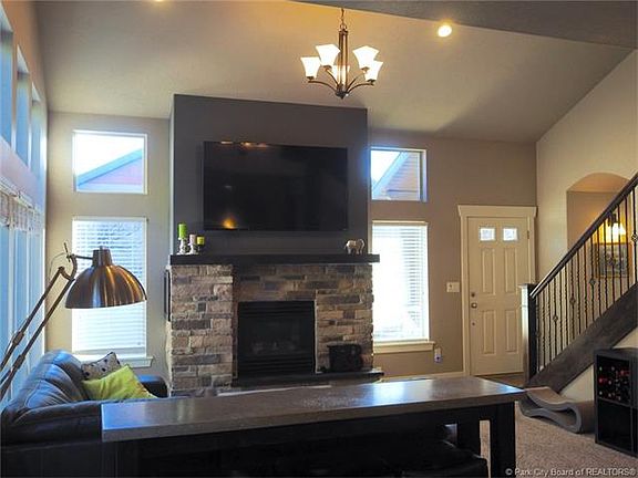 WOW! Amazing Layout with 3 bedrooms and 2 full bathrooms all upstairs! Almost new !! This home has a great open floor plan with vaulted ceilings on the main level and upstairs as well! The Living room has floor to ceiling windows with tons of natural light! The Gas Fireplace has stone and timber mantle with hidden component shelves. Kitchen with Granite countertops, Stainless Appliances, gas range, a pantry and breakfast bar and Soft close cabinets! Beautiful Master Suite with HUGE master bathroom! There are 2 Vanities, a Jetted Tub and an over-sized shower! This is an End unit on a quiet neighborhood street with community playground! Private patio area and fenced back yard with newer Bullfrog hot tub. An unfinished basement allows for big potential with a 2nd master suite and a possible theater room and bathroom!