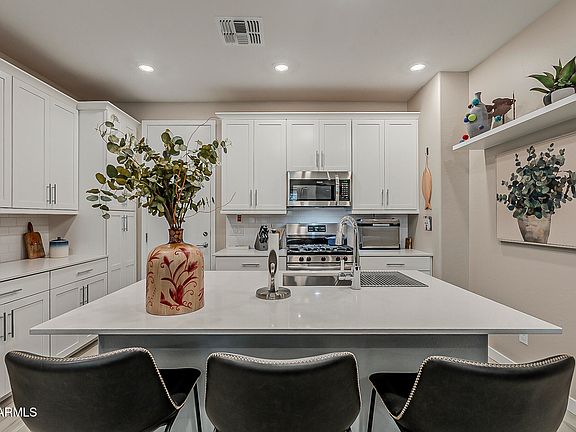Nestled in the sought-after Ocotillo Community, this nearly new townhouse is located on a premium lot within the community and offers a spacious open floor plan, private courtyard, and a rare driveway with a two-car garage. Highlights include custom designer touches, including custom paint, stunning black banisters and interior front door, upgraded tile, a chef's kitchen with quartz countertops and Energy Star stainless steel appliances, and a roomy loft, perfect for office, gym, or secondary living space. The serene primary suite provides a perfect retreat for the end of a long day.