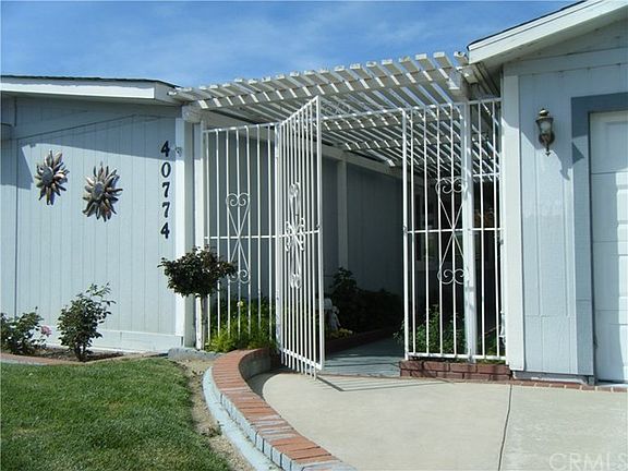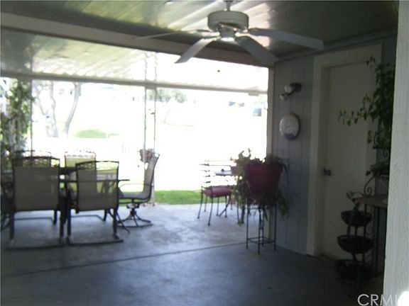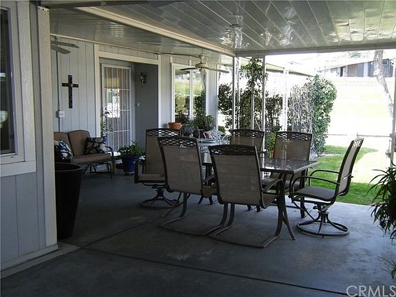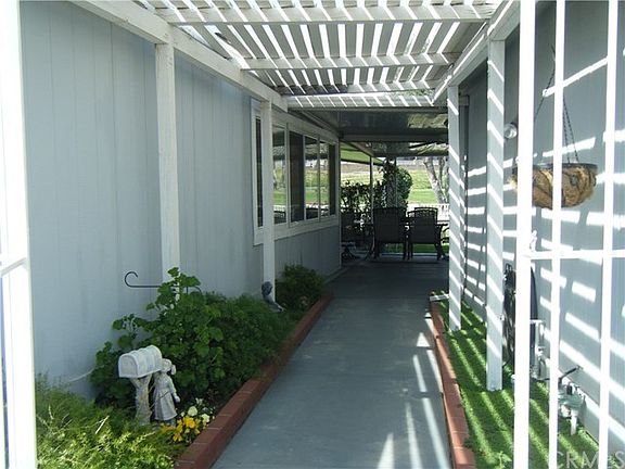 Beautiful garden style home in Highland Springs Village, a 55+ community where you own your own land. This triple wide home is on 4th hole of the 9 hole golf course. The two car garage, with 1/2 bath, has a separate, french door, entrance for your golf cart or the space can be used as a work shop. Easy care, laminate flooring enriches the bright open feeling inside this tastefully decorated 1,760 square foot home. Dual pane windows open onto the two garden patios and the golf course. The open floor plan features a very large family room off the kitchen. The large counter bar in the kitchen provides place for a snack or a full meal. The island under the radiant heat cook top is filled with storage and drawers. Master bedroom has a walk-in closet and a garden bath tub with a separate shower. The second bedroom also has an adjoining bath. The covered patios and garden areas are set up for entertaining.