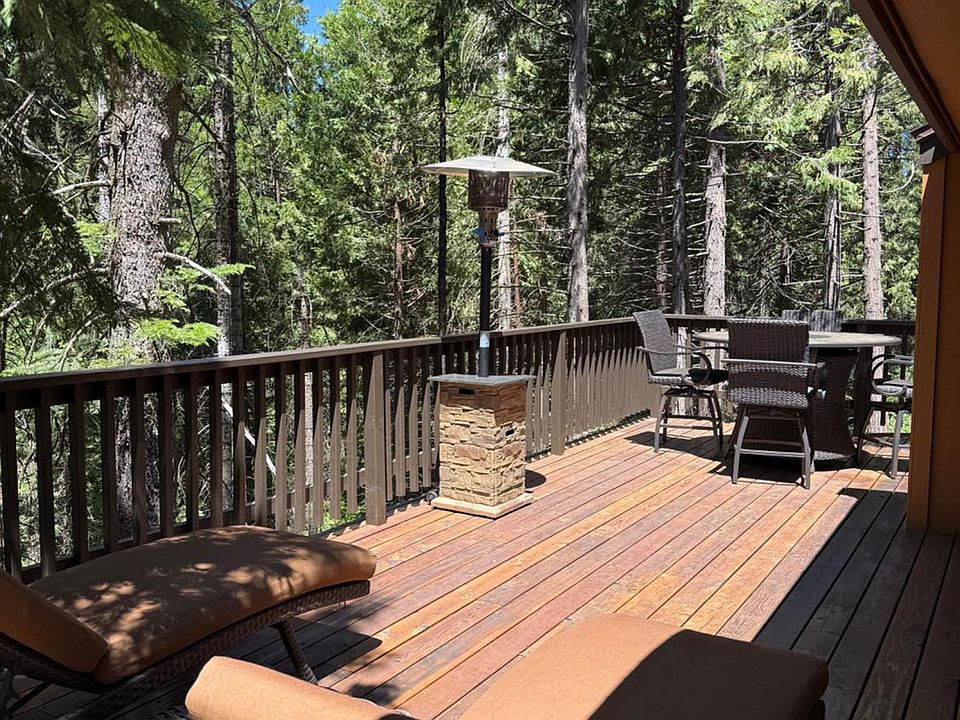 This beautiful cabin was completely remodeled from the ground up. Everything was replaced and redone 4 years ago, including a large wrap around 30 ft secluded wood patio that overlooks beautiful trees and a running stream. This cabin is beautiful. The location is the absolute best in the subdivision. This is a buy, walk in, sit down and enjoy as there is nothing else to do. Minutes from Shaver Lake for boating and skiing activities and very close to Sierra Summit for skiing in the winter. After skiing come down the hill to your cozy cabin and start the fireplace. Lots of places to walk and enjoy the mountains. In the summer months you can enjoy the water sports and then come home and jump in the community pool to cool off. If you ever wanted to have a cabin in the mountains that you didn't need to do a thing to it except start enjoying, this is it. HOA is $565 but Includes fire insurance which is huge,