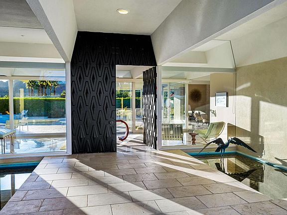 The very pinnacle of midcentury style, a desert retreat created by a renowned architect for a movie star and his cover-girl wife in 1964, there is simply no other home like The Dillman House. Situated on a coveted lot high up in sought-after, privacy-gated Thunderbird Heights, no other midcentury house of this integrity exists today, one that reflects such a golden moment in Hollywood history.The minimalist, L shaped design perfectly maintains its architecturally significant origins, has qualified for Mills Act designation and preserves its legacy for generations to come. Seemingly endless walls of glass flawlessly integrate outdoor living areas into the indoors, deep overhangs and use of natural materials; Italian marble pavers outdoors blend seamlessly into the polished indoor marble. Uninterrupted desert and mountain views from almost every room are the icing on the cake.The current owners have preserved and enhanced every aspect of Bradford Dillman and Suzy Parker's desert escape, maintaining architect Christer Barlund's vision while accommodating today's desire for energy efficiency (34 owned solar panels). Complete privacy is ensured by unique design, and effortless entertaining is assured via the sunken conversation pit, expansive bar and terrarium garden.Commanding a prime, hillside lot in one of the desert's pre-eminent neighborhoods, the residences of Thunderbird Heights have been frequented by every president from Eisenhower to Obama.