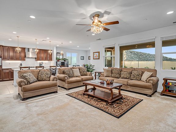 Welcome to 4079 Bridle Ct. Situated on a prime cul-de-sac lot in the prestigious, gated community of Joshua Ranch. Better than new 2021 built home with sweeping views of the surrounding mountains and valley. This solar-powered, energy efficient, home features 4 bedrooms, 2.5 bathrooms, and a California Room. Open floorplan has soaring ceilings, window blinds and recessed lighting throughout. The stunning gourmet kitchen boasts quartz countertops, farmhouse sink, huge island with overhead pendant lighting, vent hood, and GE Cafe series stainless steel appliances. Dining room with sliding glass door to California Room. Spacious Great Room with built-in cabinetry and a modern, linear fireplace. Ceiling fans in all bedrooms. Primary bedroom with ensuite bathroom. Spa-like bathroom has a shower with a built-in seat, separate soaking tub, dual vanities and walk-in closet. Landscaped backyard with stamped concrete wraps around the back of the home, low voltage exterior lighting.