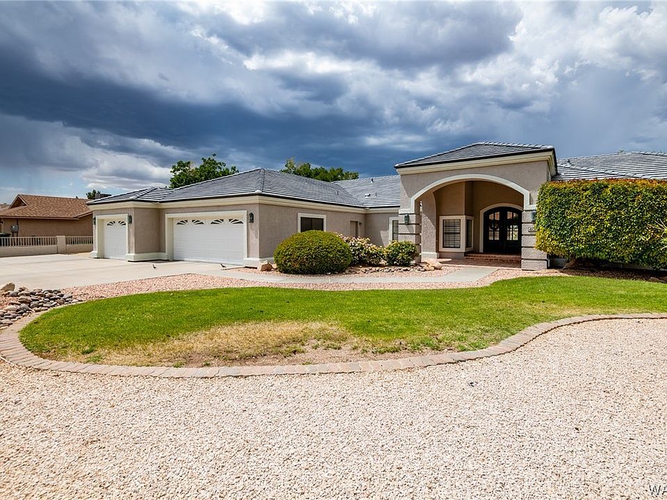 We are thrilled to present this exquisite custom home located in the prestigious Rancho Santa Fe subdivision. With 3400 square feet of luxurious living space, this property has been completely updated to offer the finest in modern living including two brand new A/C units. Boasting a half-acre of beautifully landscaped land, this home is a true oasis. Interior Features: The home features an open concept layout, perfect for entertaining guests and enjoying quality family time. The vaulted ceilings adorned with elegant beams create a sense of grandeur and spaciousness. The entire home has been tastefully updated with new interior and exterior paint, giving it a fresh and modern feel. The newly installed roof ensures peace of mind and adds to the overall curb appeal. You'll find stunning engineered hardwood floors throughout the home, adding warmth and sophistication. The living area boasts an inviting indoor fireplace, creating a cozy ambiance on chilly evenings. Additionally, there is an outdoor fireplace and fountain where you can relax and enjoy the beautiful Kingman weather. Exterior Features: The front and backyard have been meticulously landscaped, creating a lush and inviting outdoor space. The expansive half-acre lot offers endless possibilities for outdoor activities, gardening, and creating your dream outdoor living spaces. This custom home in Rancho Santa Fe is truly a rare find, offering a blend of elegance, comfort, and modern living. Don't miss this opportunity to own a beautifully updated home in one of Kingman's most sought-after neighborhoods. Schedule a private showing with your Realtor today!!