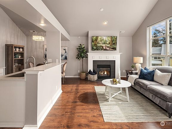 Conveniently located in the Canyon Park area of Bothell, you are just minutes away from I-405, shopping, restaurants and public transit. With an attached one car garage and private entry, this condominium lives like a single family home. With nearly 1,200 sq. ft. of living space and vaulted ceilings, you are able to live, work and play in this modern, open floorplan. South facing windows flood the home with lots of natural light, even on those gray, Winter days. The well appointed kitchen boasts granite surfaces, stainless appliances, white wood cabinetry and casual eating bar. Hardwood floors throughout, lovely wood mantled gas fireplace and a separate dining space. Enjoy your private patio deck with room for dining and gardening.