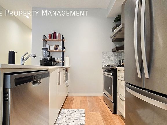 Sleek and modern kitchenPlenty cabinet storageOpen-concept designAmple storageWindow coveringsNearby parks pathways greenspaces