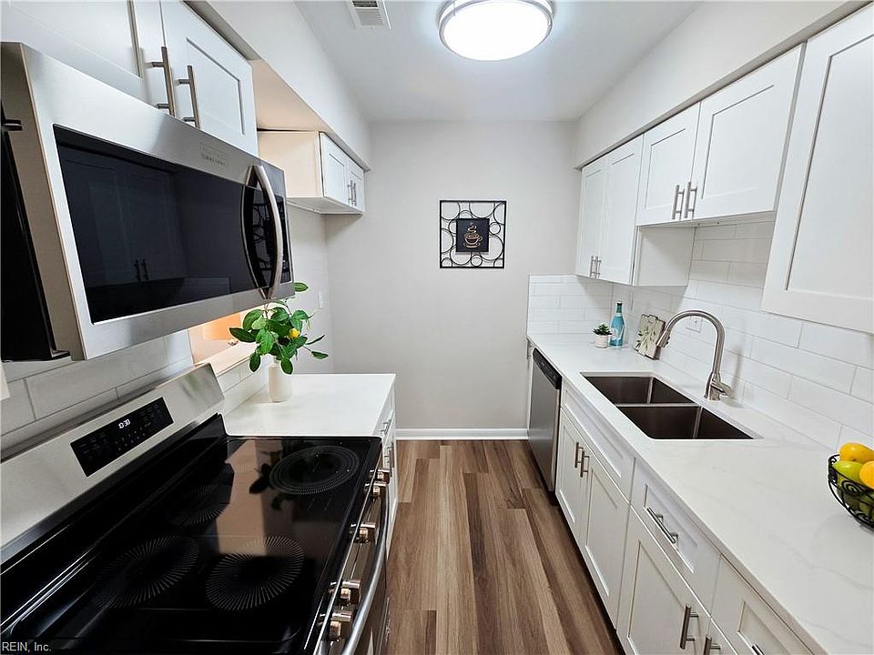 This charming 2-bedroom, 2-bathroom townhome is located in the desirable Great Neck area of Virginia Beach, within the sought-after Cox School District. Step inside to discover an open floor plan with vaulted ceilings and an abundance of natural light. The stunning, brand-new kitchen features soft-close shaker cabinets, quartz countertops, stainless steel appliances, and a custom tile backsplash. The first-floor primary bedroom adds convenience and comfort, while modern updates throughout include fresh interior paint, plush new carpet, and luxury vinyl plank flooring. Enjoy outdoor living in the large fenced-in backyard, complete with a spacious deck. Major updates provide peace of mind with a newer roof (2022), new HVAC, and new water heater. With no HOA, you’ll have flexibility and freedom to make this home your own. Minutes from local beaches, military bases, shopping, and dining, this home offers the perfect combination of style, comfort, and convenience.
