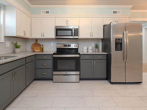 New stair treadsSelect light fixturesBrand-new rear deckNew tile floorFreshly painted cabinetsInterior doors