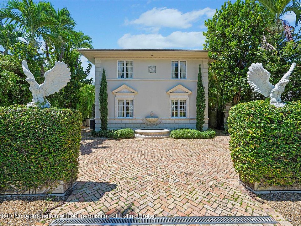 For the first time in over two decades, a remarkably private and meticulously detailed home near Worth Avenue and the town docks is available. Featuring a wonderful flowing floor plan, this unique property includes a spacious living room with views of a lush rear yard and a formal dining room with two walls of glass. Designed for ultimate privacy, it boasts beautiful moldings, a marble staircase, columns, and a marble fireplace imported from Paris. Additionally, it offers an upstairs living room and a second kitchen with an adjacent office that offers the flexibility to be converted into 4th bedroom suite.