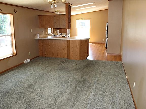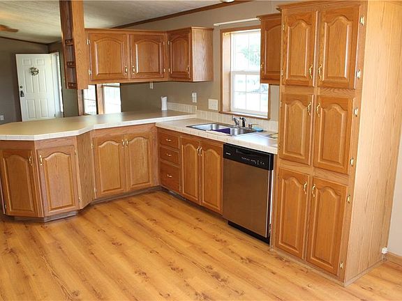 Three Bedroom, Two Bath manufactured ranch with attached two car attached garage. Large family room with vaulted ceiling. Kitchen offer oak cabinets, breakfast bar, and appliances to remain. Dining area off kitchen. Master bedroom with walk-in closet. Master bath with whirlpool tub, and separate shower. Two other bedrooms, and a full bath. Separate laundry room. Covered front porch, large lot. HOA dues are $220.00 per year.