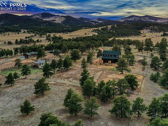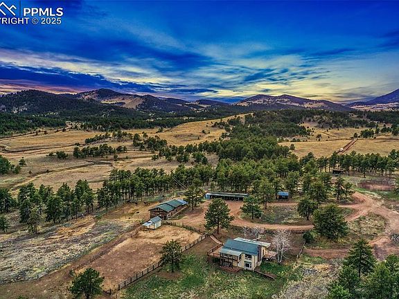 Iconic Rocky Mountain Ranch with Dual Homes, Panoramic Views, and Income Potential! Experience the best of Colorado mountain living on this remarkable ranch property featuring two beautiful homes, 270° panoramic views, and endless versatility—perfect for multi-generational living, equestrian use, or income-producing potential. The newer home, completed in 2022, was designed to take full advantage of the surrounding scenery with vaulted ceilings, warm wood accents, and expansive windows that frame mountains and rolling ranchland vistas. Offering 2 bedrooms, 2 bathrooms, and 2,148 square feet, this home exudes mountain elegance with a massive oversized garage below that doubles as flexible living or recreation space. Attached horse runs make it ideal for equestrian use or as a unique short-term rental experience for guests seeking an authentic Colorado stay. The original 1981 home adds to the property’s flexibility with 3 bedrooms, 2 bathrooms, and 1,926 square feet of comfortable living space. A wraparound deck and covered front porch invite you to take in the crisp mountain air and dramatic views. Set on usable ranch land, the property is fully equipped for livestock with cross fencing, a barn, and multiple outbuildings. Easily reachable year-round while offering a private, peaceful setting. Currently used as a successful short-term rental and horse ranch, this property presents a rare combination of lifestyle and income opportunity. Whether you’re seeking a luxury mountain retreat, a working ranch, or a multi-home estate that can generate passive income, this property delivers! Located near Eleven Mile and Spinney Reservoirs, Cripple Creek, and the scenic Gold Belt Byway. This ranch is more than a property—it’s a destination. A true reflection of the Rocky Mountain spirit, where wide-open views, quality craftsmanship, and unmatched versatility come together in one exceptional ranch.
