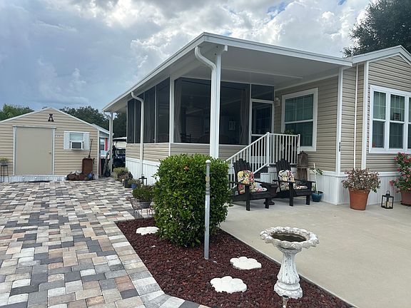 This partially furnished home is move-in ready and filled with upgrades! Enjoy an open, bright interior with tall white cabinets, crown moulding, new window coverings, built-in TV unit, and plenty of storage-including a built-in dresser and overhead cabinetry in the bedroom. The kitchen is fully equipped with a dishwasher and abundant storage, while the bathroom offers a spacious shower with a built-in bench. Upgrades include insulated double-pane hurricane-impact windows and sliders, a Culligan water system (service paid through June 2026), and washer & dryer. Outdoor living shines here with custom pavers in the front, side, and back, a shed with electric and AC, and storage under the deck. There's space for two vehicles and an 18ft boat, plus golf cart negotiable. The Glenn at Whisper Creek RV Resort with it's serene beauty is the ideal haven. Centrally located within the state and surrounded by magnificent waterways and simplistic beauty, there is no limit to the possibilities. From world famous attractions to a quiet walk on a nature trail, you can customize your stay to accommodate your lifestyle. You will have access to a newly renovated fully equipped 5,000-sq. ft. clubhouse and a 1,800-sq. ft recreation center, heated swimming pool, large screened pavilion, shuffleboard courts, horseshoe pits, exercise and billiards rooms, scheduled on-site activities and community outings. The Glenn helps assure you the maximum potential for your active adult lifestyle.