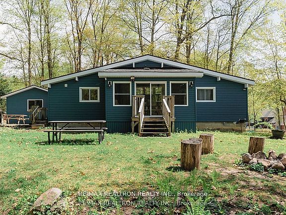 Welcome to this bright and peaceful home with a brand new kitchen, ideally located just minutes from Midland, the marina, and the shores of Georgian Bay. Nestled on a beautifully treed0.81-acre lot, this low-maintenance property offers privacy and a serene natural setting. A newer composite front deck and double front doors invite you into the spacious great room, featuring cathedral ceilings, large windows for abundant natural light, and a cozy gas fireplace with thermostat control. A full-season sunroom-perfect as a home office-overlooks the tranquil backyard, providing the perfect spot to relax or work surrounded by nature. This unique bungalow layout features a split-bedroom design for added privacy. The eat-in kitchen includes a pantry and a walkout to the back patio, with convenient access to the1.5-car garage. There's also a separate laundry and storage room. The primary bedroom includes a walk-in closet and a private two-piece ensuite. The crawl space is spray-foamed, accessible from both inside and outside, and offers generous headroom for additional storage. This home is ideal for first-time buyers, retirees, or as a recreational getaway in a quiet, peaceful area. You must see!