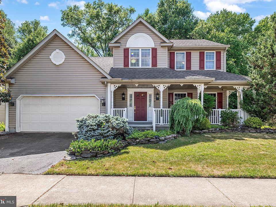 OFFER DEADLINE 7/14 6pm: Welcome to this charming move-in ready Colonial nestled in the heart of Yorkshire Woods! Boasting a welcoming covered front porch, this home offers a blend of classic charm and modern updates. Once inside, you'll discover gleaming hardwood flooring and elegant crown molding throughout. The spacious living room flows seamlessly into the dining room, highlighted by an exquisite built-in and a floor-to-ceiling bay window, flooding the space with natural light. The completely updated kitchen boasts maple cabinetry, granite countertops, a stylish tile backsplash, and a convenient pantry for ample storage. Adjacent to the kitchen, the family room features a vaulted ceiling opening to the second level loft area, recessed lighting and a cozy gas fireplace flanked by windows. Upstairs, the second level boasts three generously sized bedrooms and two full bathrooms. The primary bedroom features a walk-in closet and an ensuite for added privacy and comfort. The two secondary bedrooms share a full hall bath. The loft has a door and offers flexibility to be converted into a fourth bedroom with modifications. Additional storage space is available in the attic, while the walk-out basement remains unfinished, providing potential for customization to suit your needs. Experience tranquility in the peaceful backyard oasis with perennial gardens, perfect for relaxation or entertaining. It's accessible from the inviting 3-season porch off the kitchen. Convenience is key with a two-car garage and proximity to the University of Delaware, I-95, and the Christiana Mall, ensuring easy access to shopping, dining, and entertainment options. Don’t miss the opportunity to make this meticulously maintained home yours. Schedule your private tour today and envision the possibilities awaiting you!