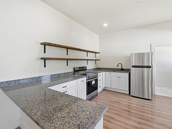 The home boasts a spacious room layout with abundant natural light, complemented by LVP flooring and a neutral décor. The kitchen is equipped with modern appliances and provides ample countertop space, ensuring a functional and practical cooking experience.