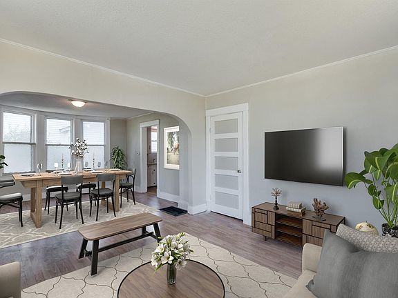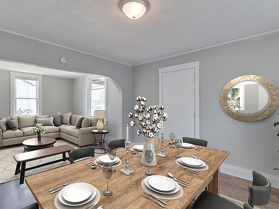 Charming bungalow with a sizable covered front porch that offers ample curb appeal. Beautifully renovated interior with abundant natural light to highlight this 3 bedroom and 1.5 bath home. New paint and flooring throughout, updated kitchen, added half bath on the main floor, spacious formal dining area that leads to the living room. Laundry room and large primary bedroom on the main floor with 2 additional bedrooms and full bathroom upstairs. Sizeable partially fenced back yard with storage shed, parking and alley access in the back.