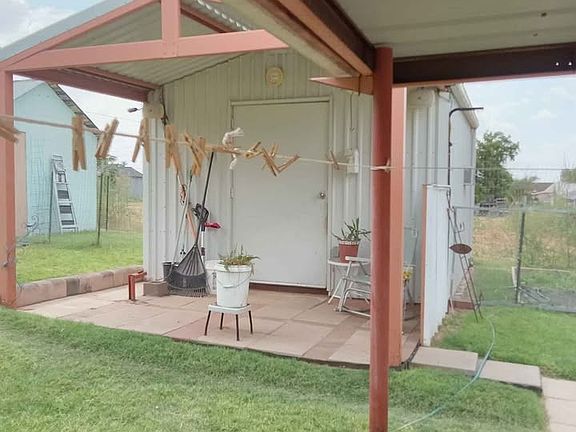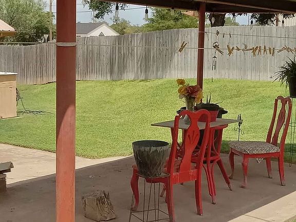 Clean and nicely maintained 2BR, 1.5 bath home on attractively landscaped interior lot. Laminate flooring, dining bar, separate dining area, half bath in master, separate utility room with full-size hookups. Fenced yard includes covered patios, storm cellar, man cave with awning and storage building. Water well is on a separate electric meter and provides ample water for the yard, garden and landscape. Electric service ready for generator hookup. Lots to love inside and out! 72 hour notice required for showing. Please set appointment to view. Animals onsite and will be removed for showings.