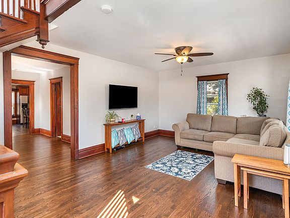 Step back in time while enjoying today's comforts in this beautifully updated 1910 home! From the moment you enter, you'll be captivated by the stunning original and newly refinished hardwood floors, craftsman-style trim and moulding, and striking leaded glass details that showcase the home's rich history. The main level offers a spacious living room, a formal dining room highlighted by an original bay window, and a large kitchen with ample cabinet storage, a center island, and direct access to the covered side porch with a charming swing-the perfect spot to unwind. This level also includes a full bathroom and convenient laundry closet. Upstairs, you'll find all bedrooms, plus a versatile bonus room ideal for a home office, reading nook, or even a chic dressing room. A staircase leads to the attic, which can be finished to create additional living space. Recent updates ensure peace of mind, including a bathroom refresh in 2021, new furnace and A/C in 2024, freshly refinished porches in August 2025, and brand-new upstairs carpet installed in July 2025. Outside, the fully fenced yard provides both beauty and security for any pets, while the home's unbeatable location places you right across the street from the iconic Dairy Joy. With major upgrades already completed, this home is ready for its next chapter-offering the best of both worlds: historic charm and modern convenience.