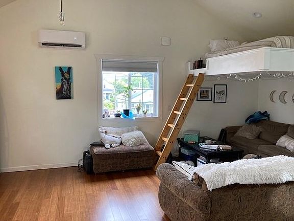 Be the second ever tenant in this two-year old, above-garage detached studio apartment! 480 square feet open layout. The apartment has high cathedral ceilings and tons of light. There is a separate loft bed area plus a separate storage area above the bathroom. Fully loaded: all new appliances, includes air conditioner/heater mini-split, dishwasher, full sized refrigerator, stacked washer/dryer and quality finishes throughout the apartment. The entrance is private which leads to stairs up to the apartment above. The garage is seldom used and the apartment has completely separate access off the alleyway. Rent is all-inclusive: no separate bills for electricity, gas, water, sewer, garbage, or internet. Available September 1st, 12-month lease. Sunnyland is a great neighborhood with fantastic neighbors. The apartment is just minutes from Trader Joes, Haggen, and numerous businesses and restaurants on James Street. Very easy to drive, bus, or ride your bike to downtown. Just a few minutes away from Peace Health Hospital. No Pets. No Smoking/Vaping. Background/credit check will need to be completed prior to signing a lease. We are not accepting applications until after you have met us and had a chance to see the apartment in person. We have scheduled an open house for this coming Sunday (6/12) and will give you the specific time via email if you are interested in viewing the apartment.