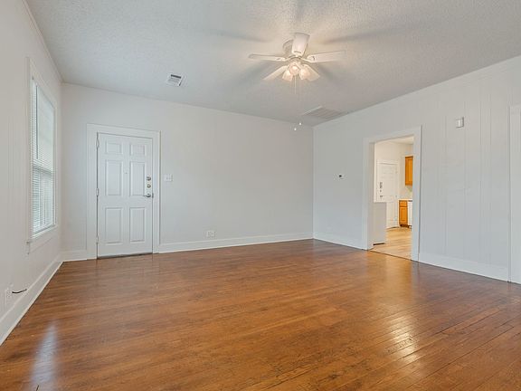 Carpet in the bedroomsHardwood floorsWood cabinetsWhite appliances