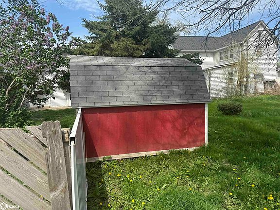 Great starter home in a smalltown. Affordable Solid home in smalltown. Shaded Fenced in yard with yard shed and Solid detached garage with storage loft. Two bedroom and a bath on main floor possibly 3 if you use the small landing area upstairs. Check out the floored attic- great storage. Basement has stool and washer and dryer hookups and great storage area. There are Lilics & peonies in the backyard, and its ready for some backyard grilling. It has a block detached 1 1/2-2 car garage. The enclosed window front porch is ready to come sit and watch the world go by. At some point most of the windows have been updated in the home.