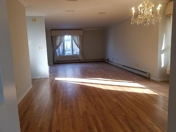 Good condition half brick duplex located on quiet st and close to NYC transit shopping and park. large marbled entry foyer hardwd flr thru out.lr with fplmeik with laundry.sliding glass door to deck and back yard.finished groud floor with 1bath room and summer kitchen .2Refrigerators .New paint. New flooring.