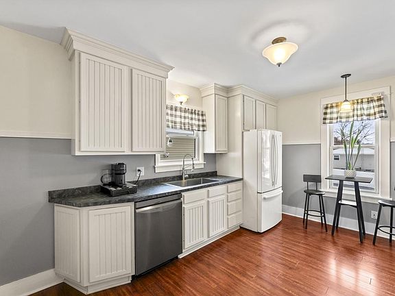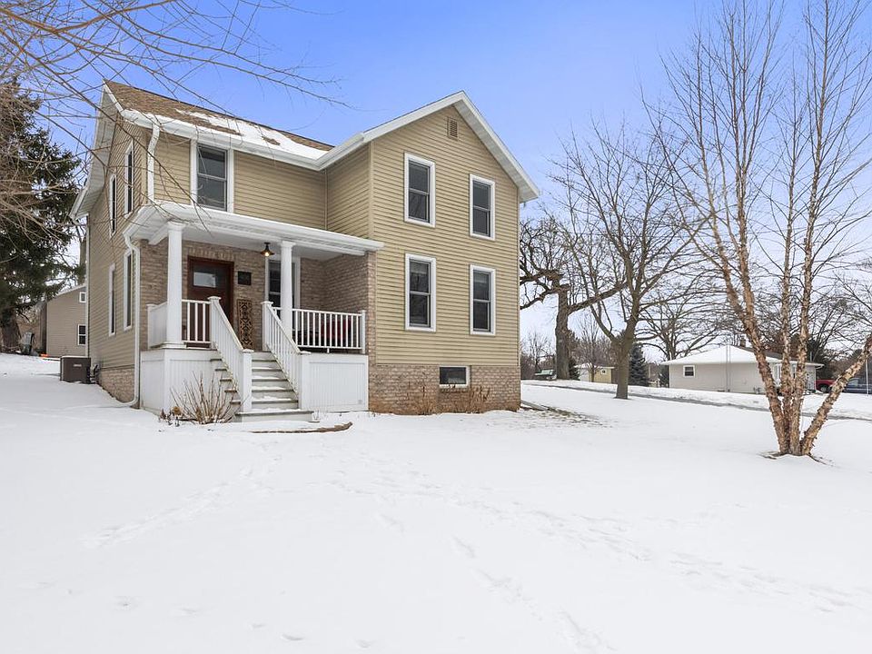 Beautifully updated and charming, this well-maintained 2-story farmhouse offers comfort, character, and a true sense of home. A welcoming front porch leads to bright living spaces with 8-foot ceilings, creating a warm and inviting living space. Featuring 3 bedrooms and 2 full baths, this home blends timeless charm with thoughtful modern updates for easy, everyday living. Enjoy your private backyard retreat with a patio and natural outdoor fireplace- perfect for relaxing, gathering, or entertaining. The spacious 2.5-car heated garage provides excellent space for vehicles, storage, or hobbies, plus an additional shed with electricity for added versatility. Conveniently located near downtown shops, dining, and community events, this home offers comfort, charm, and connection.