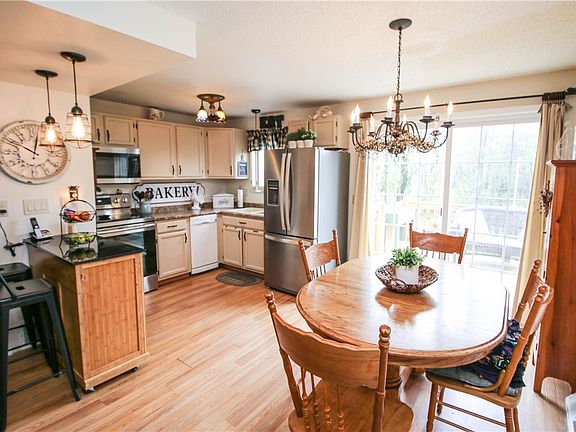 Welcome Home! This end unit 2 bedroom and 1.5 bath condo is waiting for you! Step inside to a welcoming open floor plan with a large living room. The updated eat in kitchen will make all your cooking a breeze with stainless appliances, an abundance of storage in the white cabinets and a spacious dining area. Plus, a 1st floor laundry and an updated 1st floor half bath. Upstairs you will find 2 bedrooms and a full bath including a primary bedroom with double closets. A sliding glass door leads you out to a deck that overlooks a park like yard. Newer vinyl windows and newer high efficiency furnace. Included in the HOA cost is use of a community pool, clubhouse, trash/garbage, water, snow removal and much more! This one is just minutes from everything and 390! Don't miss out on this one! It is sure to please! Delayed negotiations until 5/11 at 12pm.