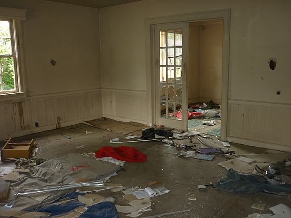 Exterior Features:Roof is metal. Siding is asphalt. Large level lot. Curb appeal is fair, needs work.Interior Features:Full board-up.Home will require a full clean out.