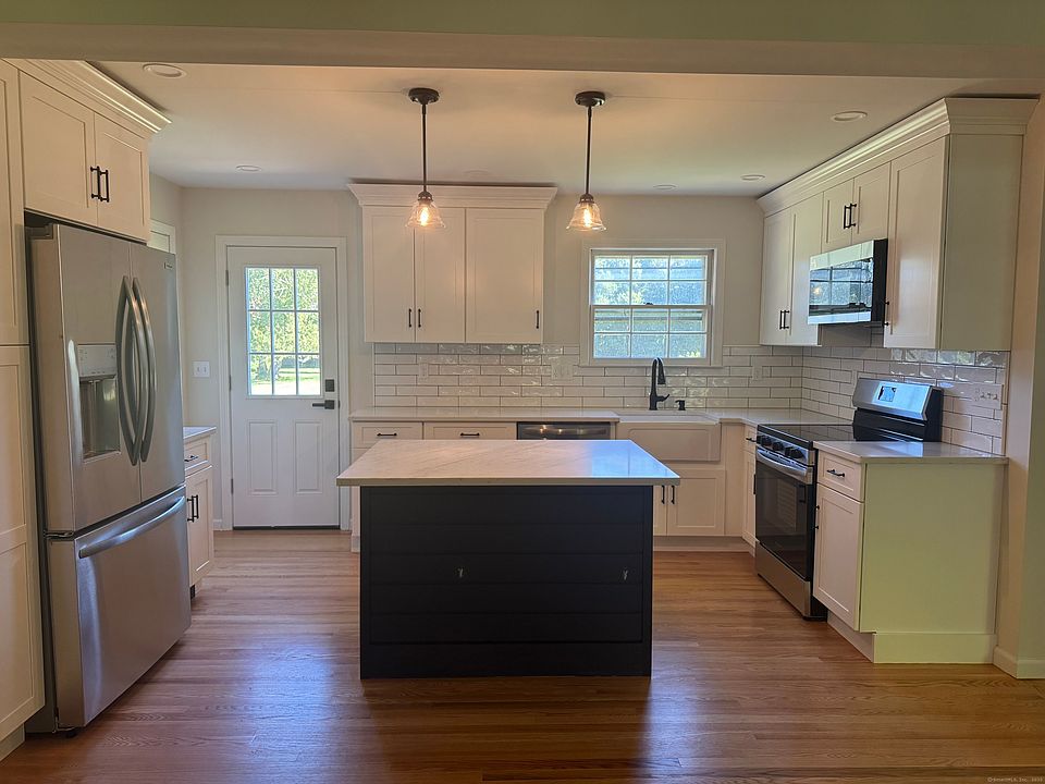 Welcome to 408 Hut Hill Road, where timeless charm meets modern convenience in this beautifully reimagined 4-bedroom, 2.5-bath home. Set on a peaceful country road in desirable Bridgewater, this home has been completely renovated from top to bottom. Enjoy cooking and entertaining in the brand-new custom kitchen, featuring stylish cabinetry, stainless steel appliances, and quartz countertops. Walls have been opened to create a spacious, sun-filled open floor plan, perfect for everyday living and gatherings. All bathrooms have been fully renovated, including a gorgeous primary suite with a lovely bathroom. Entire house has all-new plumbing supply lines & drains, brand-new central air conditioning, and refinished hardwood floors throughout. Newly upgraded 200 amp service with new overhead line from street. This is the turnkey home you've been waiting for - just move in and enjoy.