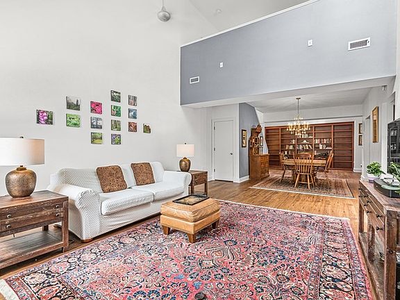 Penthouse living at Washington Estates Condos! From the vaulted ceilings to the skylights to the exceptional scale offering flex space galore, this unit will wow. The gracious entry serves as a den featuring a wall of bookcases, flowing into the dining room and then living room. This expansive space is dappled in sunlight and simply calls out to host holidays, game-nights or even that next watch-party! This homes’ open-concept lay-out oozes with the feel of together but designed space, offering purpose. Galley KIT, hosting U-shaped counters, boasts extensive cabinetry and allows for shared prep areas, making entertaining prep a breeze. The main level BR holds 2 closets and a vaulted ceiling, making a perfect dual-use space with its generous size, room enough for that hobby or exercise nook. The primary BR is set aloft and boasts a walk-in closet and dble closet; renovated bath with marble counters + storage. Prime location nearby to shops, dining, train, bus, parks & trails. Sweet!