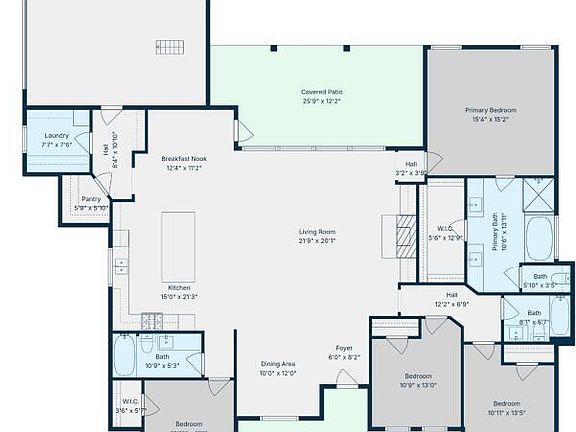 Stylish fixtures and finishesSleek clean designCovered patioOpen-concept layoutMassive islandTall ceilingsBuilt-in shelving