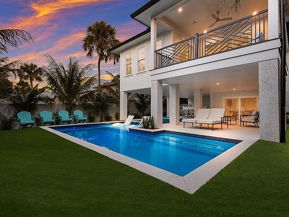 Welcome to Boundless Waves, a new, custom-built coastal estate that perfectly captures the essence of luxury island living on beautiful Anna Maria Island. This exceptional six-bedroom, six-and-a-half-bath residence spans over 3,500 square feet and was thoughtfully designed with no expense spared and no detail overlooked. Every inch of this home reflects superior craftsmanship, from the extensive custom millwork and wood trim to the refined finishes that create an atmosphere of timeless coastal elegance. The open-concept floor plan is bathed in natural light and anchored by a stunning great room with soaring ceilings, shiplap accents, and wide-plank flooring that flows seamlessly throughout. The gourmet kitchen is a showpiece of design and function, featuring professional-grade appliances, a large quartz island, custom cabinetry, and designer lighting—perfect for entertaining or gathering with family. Each bedroom is its own private retreat, complete with an ensuite bath, custom tilework, and spa-like features. The primary suite offers a serene escape with a luxurious bathroom, dual vanities, and direct access to a private balcony. Every detail has been considered, blending modern comfort with coastal sophistication. Outside, the home’s resort-style backyard is a true sanctuary. The sparkling pool and spa are surrounded by lush tropical landscaping and durable, low-maintenance artificial turf. A covered lanai and multiple balconies provide inviting spaces for relaxing, dining, and entertaining. Whether you’re soaking up the sun poolside or enjoying sunset views from the rooftop deck, the outdoor living experience at Boundless Waves is unmatched. This property is perfect for a vacation home or investment property. CURRENTLY A RENTAL PROPERTY WITH FORWARD BOOKINGS IN PLACE!!! Located in the heart of Anna Maria, this home offers the perfect balance of tranquility and convenience. Stroll or bike to the beach in minutes, explore the island’s boutique shops and dining on charming Pine Avenue, or cruise to the shore in your golf cart. Boundless Waves isn’t just a home—it’s a lifestyle of relaxed luxury and effortless coastal living.