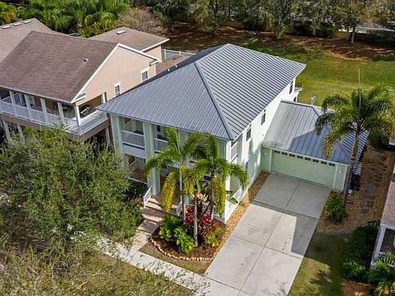 "AMAZING" DESCRIBES IT ALL!! Prepare to be inspired.. This signature property provides a comfortable, Key West type lifestyle with the perfect blend of functionality and impressive architectural detail. This meticulously maintained 4 bedroom, 2 1/2 bath, 2 car garage jewel, showcases 2320 sq ft of classic and charming living space. This two story is nestled back in the highly sought after MiraBay community in Apollo Beach. With its 24 hour gated security, this makes for a very secure neighborhood for all to enjoy. Upon entering the front door you will notice the gleaming hardwood floors that lend an air of spaciousness and historic charm to each room along with the tall baseboard, executive crown and trim package in the formal living room and dining room. With the kitchen being the hub of the home, you can enjoy your company at the breakfast nook while cooking and utilizing the stainless steel appliances. The guest bedroom and a spare bedroom upstairs lead out to a second story balcony where you can enjoy a cool fall day while catching up on your favorite novel. The master suite has his and her sinks. a spacious tub to soak in along with a walk in shower. Many of the components of this home have been updated, a few to include: Metal roof (2006), water heater (2020), exterior trim painted (2021), exterior main body (2018), inside repainted (2018), exterior porch ceiling panels and new fans (2021), two new ac units (2021) come with 10 year warranty. Some of the other hobbies many of the MiraBay home owners enjoy are: the community park, playground, tennis courts, full service gym and spa. The neighborhood clubhouse also features a heated resort style pool with water slide. The shopping, dining, and culture of Tampa and St. Petersburg are close by. When work is done, world-famous vacation destinations and some of Florida's most beautiful beaches are just a car ride away. Welcome home!!!!