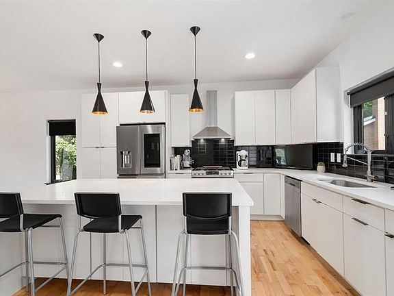 Mixing a contemporary interior with the charm of a modern farmhouse exterior, this recently custom-built home is steps from the village in Sewickley. The exterior features white board and batten for a contemporary look. A flat back yard & patio are perfect for entertaining. The interior features high ceilings & maple hardwood floors. The modern kitchen features black subway tile, white cabinets, stainless steel appliances, quartz countertops & island. Adjacent to the living room, through French doors, is the fourth bedroom with access to a full bath, currently used as a home office. The second floor offers 2 large bedrooms w/ access to guest bath w/ a floating vanity, slate flooring & tiled bath/shower w/ glass door. The primary bedroom features sloped ceilings & private closet/dressing room. There is a flex space used as a spin studio but could be used as small office or nursery. The primary bath offers a double vanity and walk-in shower. The basement is ready w/ rough-ins.