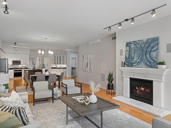 Gas fireplaceReal hardwood flooringLarge center islandBuilt in buffetOpen concept living spaceTons of in-unit storageStainless steel appliances