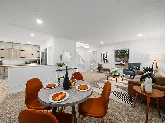 Step into this beautifully remodeled home set on an expansive corner lot, where modern style, thoughtful craftsmanship, and functional design come together. From the moment you walk in, you’re greeted with a fresh, contemporary atmosphere highlighted by all-new luxury vinyl plank flooring, plush carpeting, updated windows, and a full interior refresh featuring clean, neutral paint throughout. The main living spaces feel bright and inviting, offering comfortable flow and plenty of room for everyday living or entertaining. The kitchen has been tastefully updated with modern finishes, brand-new stainless steel appliances, and a layout that makes cooking and gathering easy and enjoyable. The main floor bathroom has been refreshed with updated finishes that fit perfectly with the home’s clean, modern aesthetic. All three bedrooms are conveniently located on the same level, providing a practical layout for families, guests, or anyone who prefers a same single-story lifestyle. Outside, the generous corner lot gives you space rarely found in town—perfect for outdoor activities, gardening, pets, or designing the backyard oasis of your dreams. Whether you're looking for additional storage or a place to work year-round, the one-stall detached heated garage offers flexibility for hobbies, projects, or winter protection for your vehicle. The home sits on a crawl space that has been improved, including updated subflooring and structural support, giving you long-term peace of mind. Combined with a newer roof and a long list of recent updates, this property is truly move-in ready. With its modern touches, spacious lot, and extensive improvements, this home offers exceptional value and a comfortable, updated place to call your own. Come check it out today! Seller is a licensed realtor in the state of South Dakota.