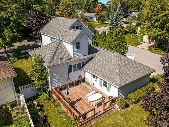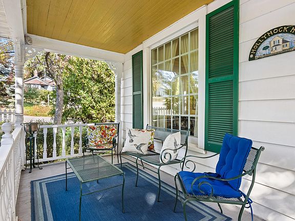 The Hollyhock House is a charming, traditional farmhouse-style home perfectly situated on a prime corner lot. Like its namesake, this home has aged with grace, offering a cozy village retreat with a covered porch and a private backyard grilling deck. Inside, the Hollyhock House has a timeless design, with a straightforward and unadorned layout. The main level offers a simple, open flow between the living and dining areas. The east-facing kitchen is filled with morning light, while a private library or office provides a quiet space for reading or work (or a potential 3rd bedroom). A full bath is conveniently located on this floor. Wood floors throughout add a sense of history and warmth to the home. The upper level is home to two bedrooms that share a full bath at the end of the hall—a classic and practical layout that prioritizes function over modern luxury. The primary bedroom has a walk-in closet; the guest bedroom has no closet, typical for this era. The location of the Hollyhock House is a true highlight. You can easily walk or ride your golf cart to the beach, marina, bakery, and library. An attached one-car garage adds to the home's convenience. Being sold as-is, Hollyhock House offers a unique opportunity to own a piece of village history and experience a simple, unhurried lifestyle.