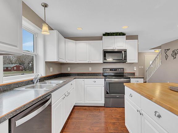 2 Story Home Awaits! Built in 1955 but completely remolded in 2013!! Updates include roof, vinyl siding, windows, ductwork, plumbing, electrical, CA, Air exchanger and water heater. Spacious foyer that gives you plenty of room for a bench. Large dining room & plenty of windows. Large kitchen offers tons of cabinets, lazy susan, pantry, center island. Open floor plan! Spacious living room! Main floor bedroom and wic. Upstairs lg bedroom that has a door that leads to 6x10 balcony overlooks backyard, walk in closet & walk through to full bathroom. 3 upstairs bedrooms. Upstairs laundry room w/counter and storage. Lower level family room with an egress window, 3/4 bathroom, 2 storage areas. Each level has its on heating zones. Over 2300 sq ft finished, updated carpeting & wide plank flooring, cam lighting, 6 panel doors, 4 bedrooms and 3bathrooms. Tons of storage in this home. Backyard is totally fenced in, storage shed, patio and raised garden. Alley access for add' parking or garage.