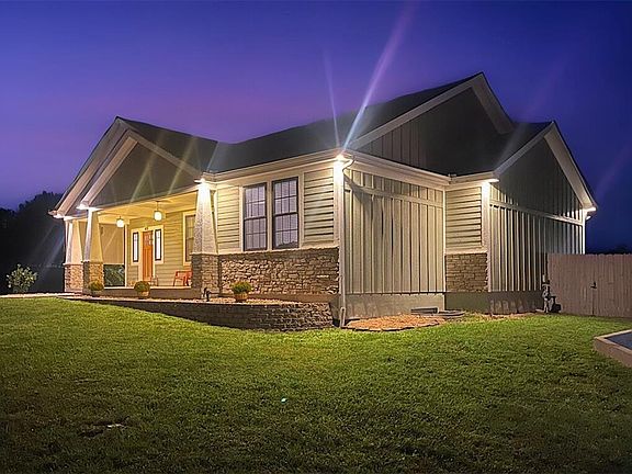 Welcome to 408 NW Rust Court in Grain Valley. This beautiful custom-built 2018 craftsman-style ranch sits on a quiet cul-de-sac with a long driveway and an oversized 28x34 detached workshop in addition to the two-car garage. Featuring four bedrooms and three and a half baths, this spacious open floor plan is perfect for modern living.